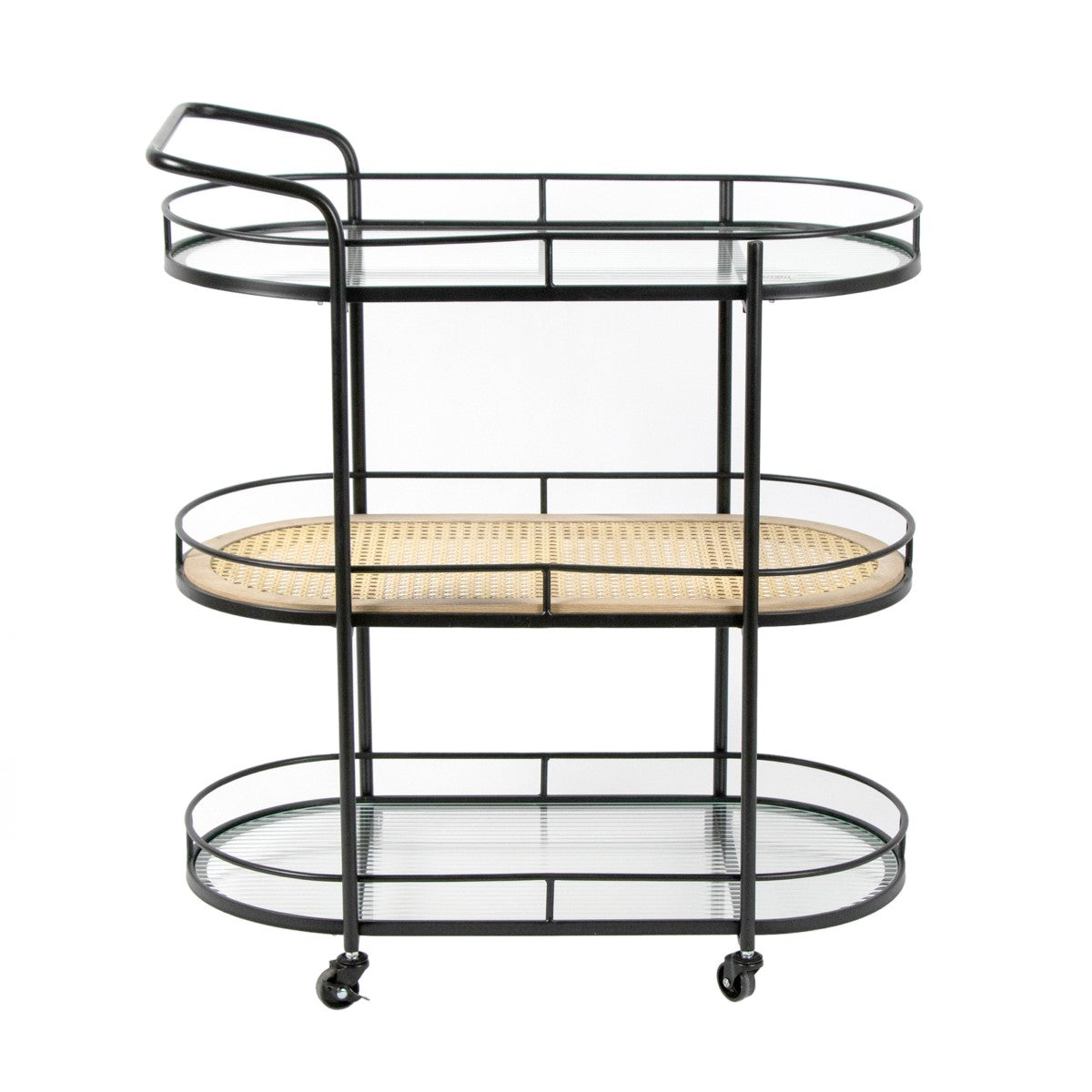 El carro auxiliar “Black Bohemian” es una pieza que combina sofisticación y practicidad. Su estructura metálica negra y sus elegantes bandejas de cristal aportan un aire moderno y refinado, ideal para espacios con personalidad.