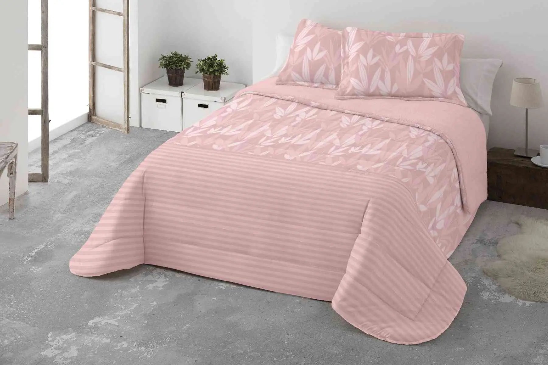 Edredón Sherpa Uta, en color rosa, de la marca Miracle Home. Edredón confeccionado con tejido de naturina (similar a la coralina) en la cara principal y sherpa (borreguillo) a tono en el reverso. Diseño clásico. Máximo confort y calidez, tacto de vanguardia en tejido de naturina, excelente calidad, con suave tejido, diseño moderno.